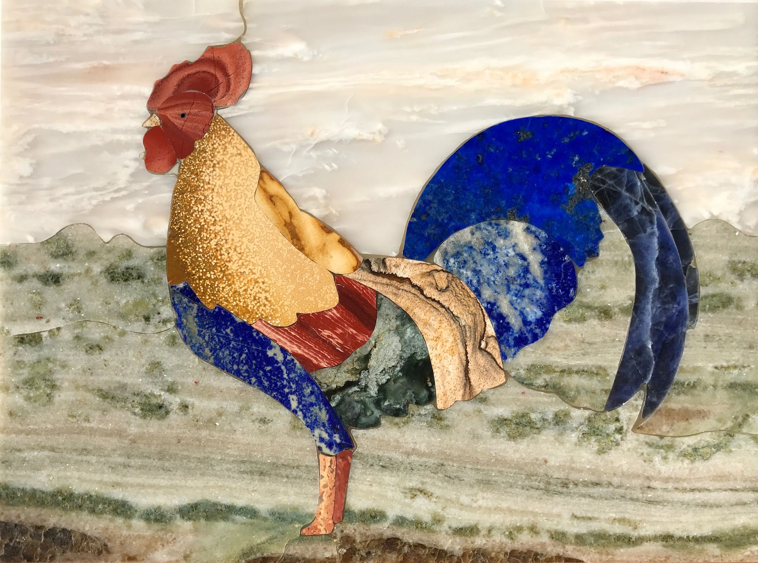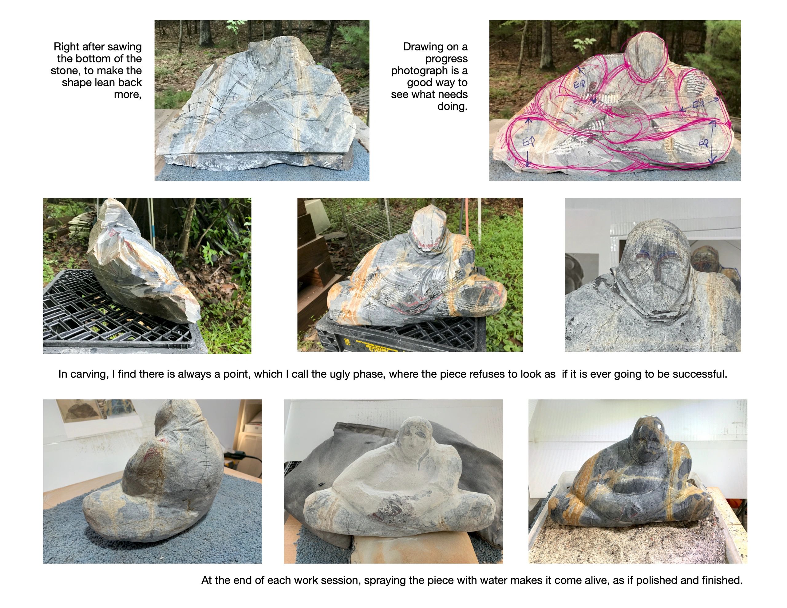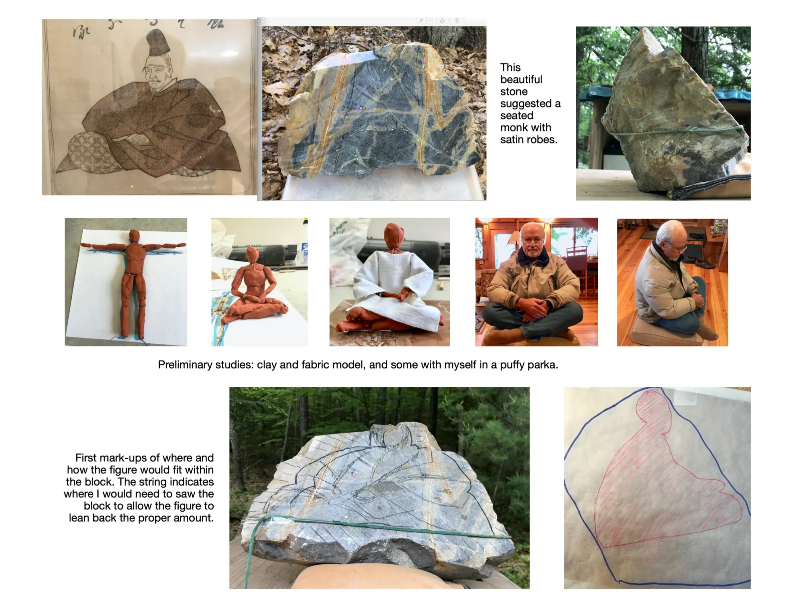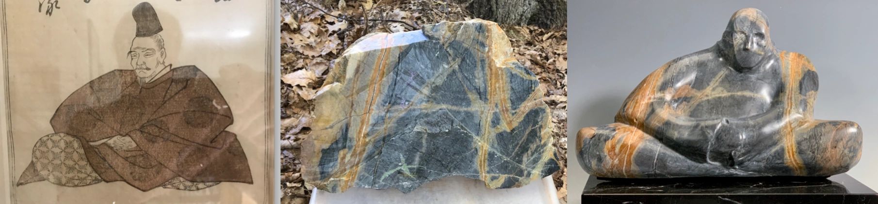 The Japanese print of a sage combined in my mind with the beautiful chunk of Picasso Marble to suggest a monk in elegant silk robes sunk in thought.