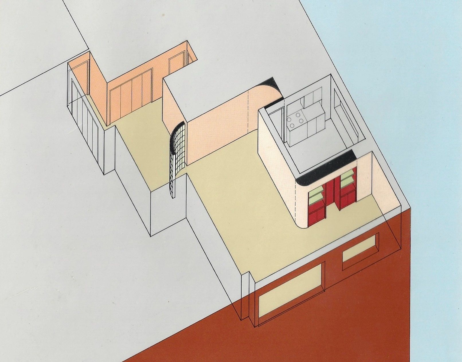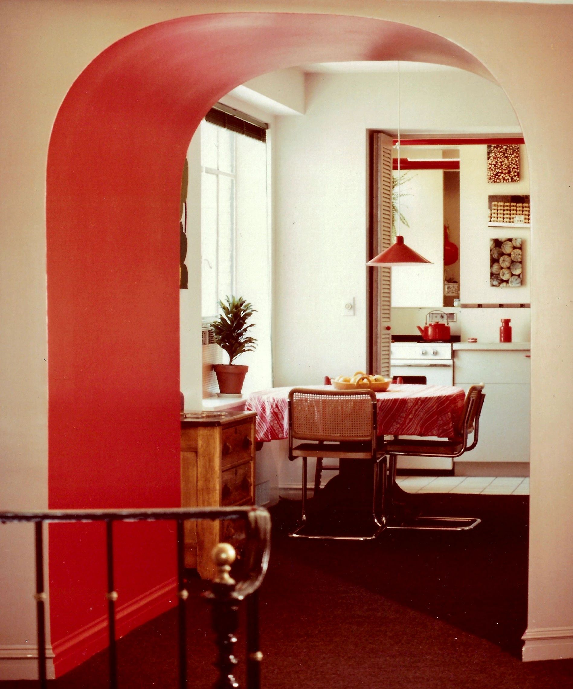 Apartment 4 – The renovation also significantly reorganized the circulation, and highlighted it by brightly colored archways.