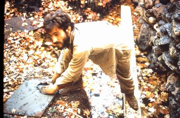 The intersection between the closed, air conditioned wing and the open, Tahitian fare bungalow was highlighted by an ascending rubble wall.