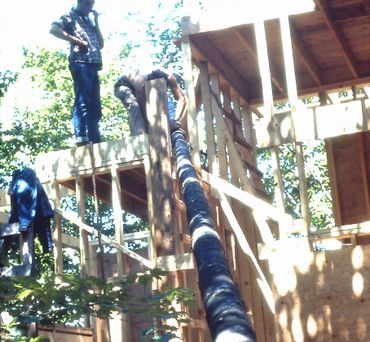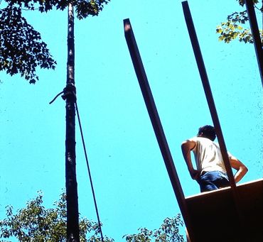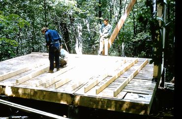 The site had fabulous mountain views, but not wishing to cut down lots of trees, we built up.