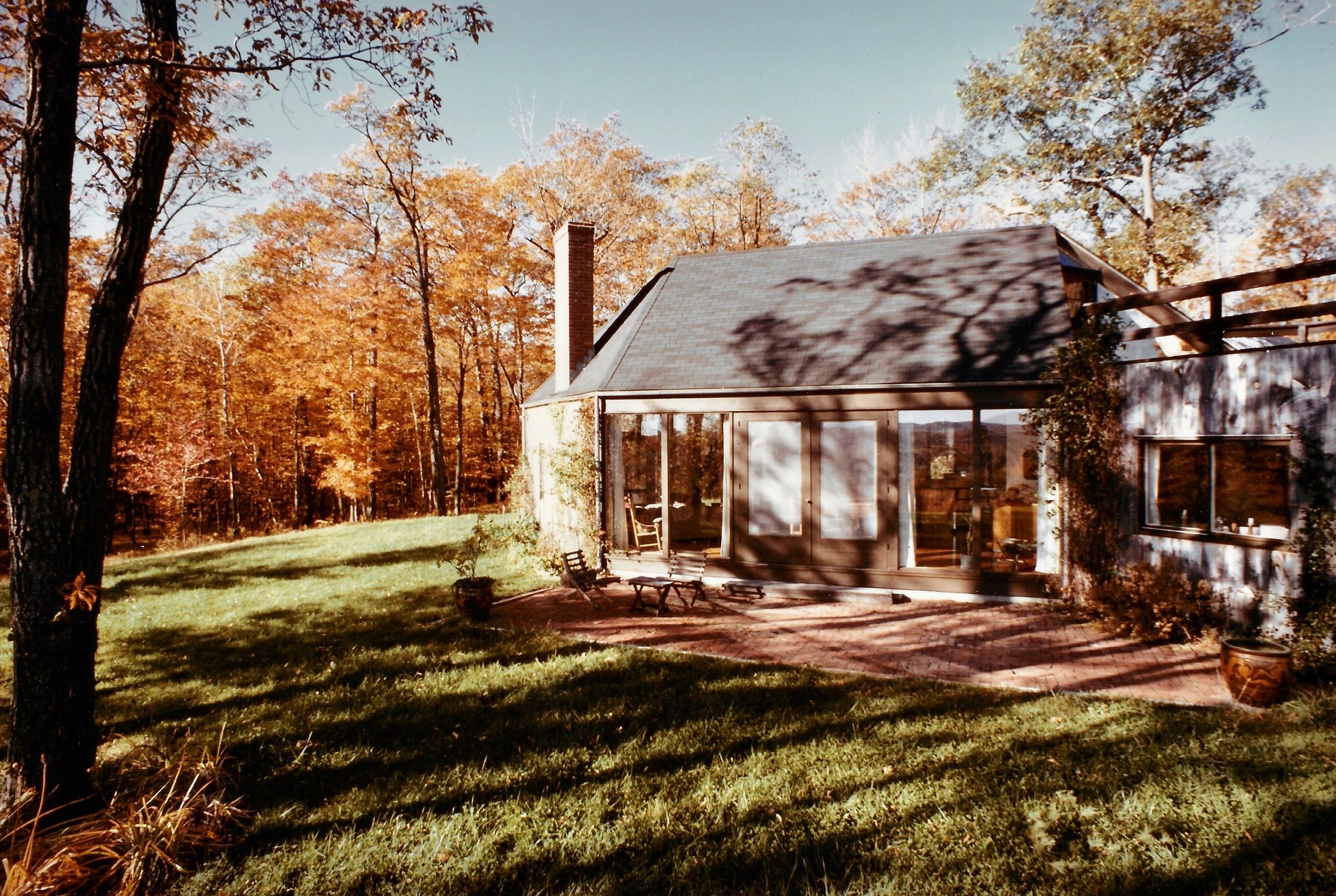 This house grew as it converted from a 1990 off-the-grid vacation cabin (right) to a fully modern house in 1997 (middle and left).